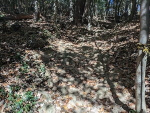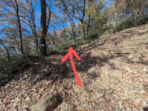 岩と落ち葉で滑りそうになりながら登っていきます。