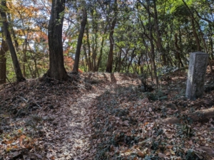 石碑が目印でYAMAPの道に行くには、右に降りていきます。