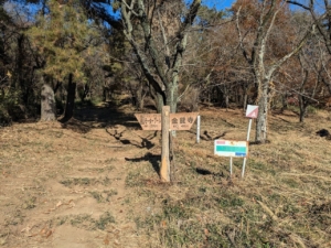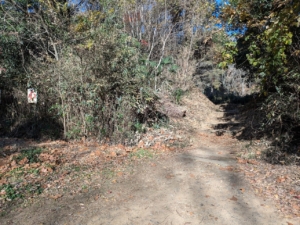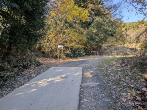 奥の砂利の方に進んでいくと、矢印の看板があり、ハイキングコーススタートとなります!