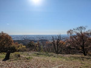 見下ろした街並みと残っている紅葉が素敵です^^